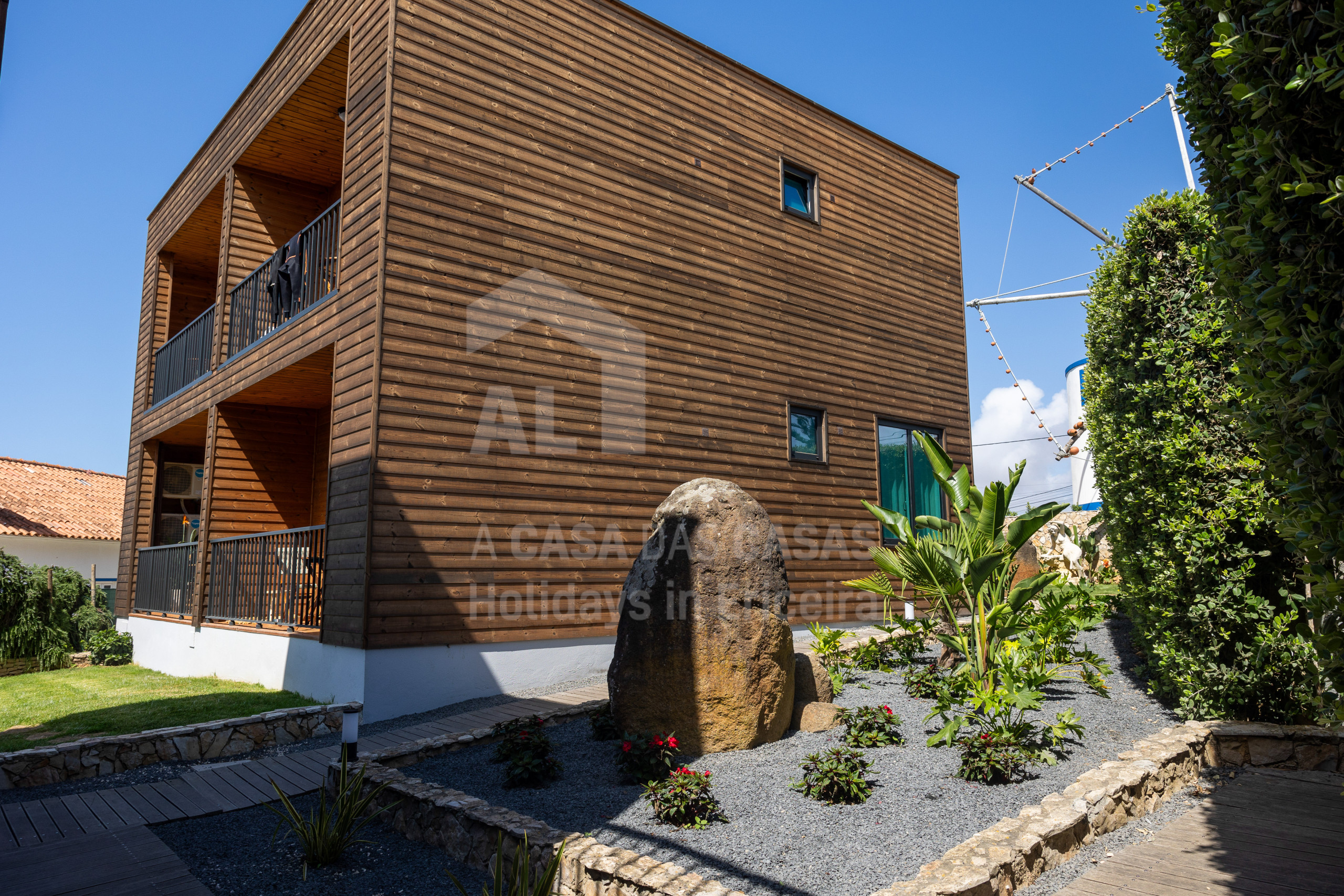 It is perfectly positioned just 1 km from the beautiful sandy beach of Praia dos Coxos, 200 m from the centre of Ribamar village, and 50 m from Raiz supermarket for any needs. Lisbon Airport is approximately 50 km away. The tranquil atmosphere of the seaside neighbourhood creates an idyllic setting for couples.