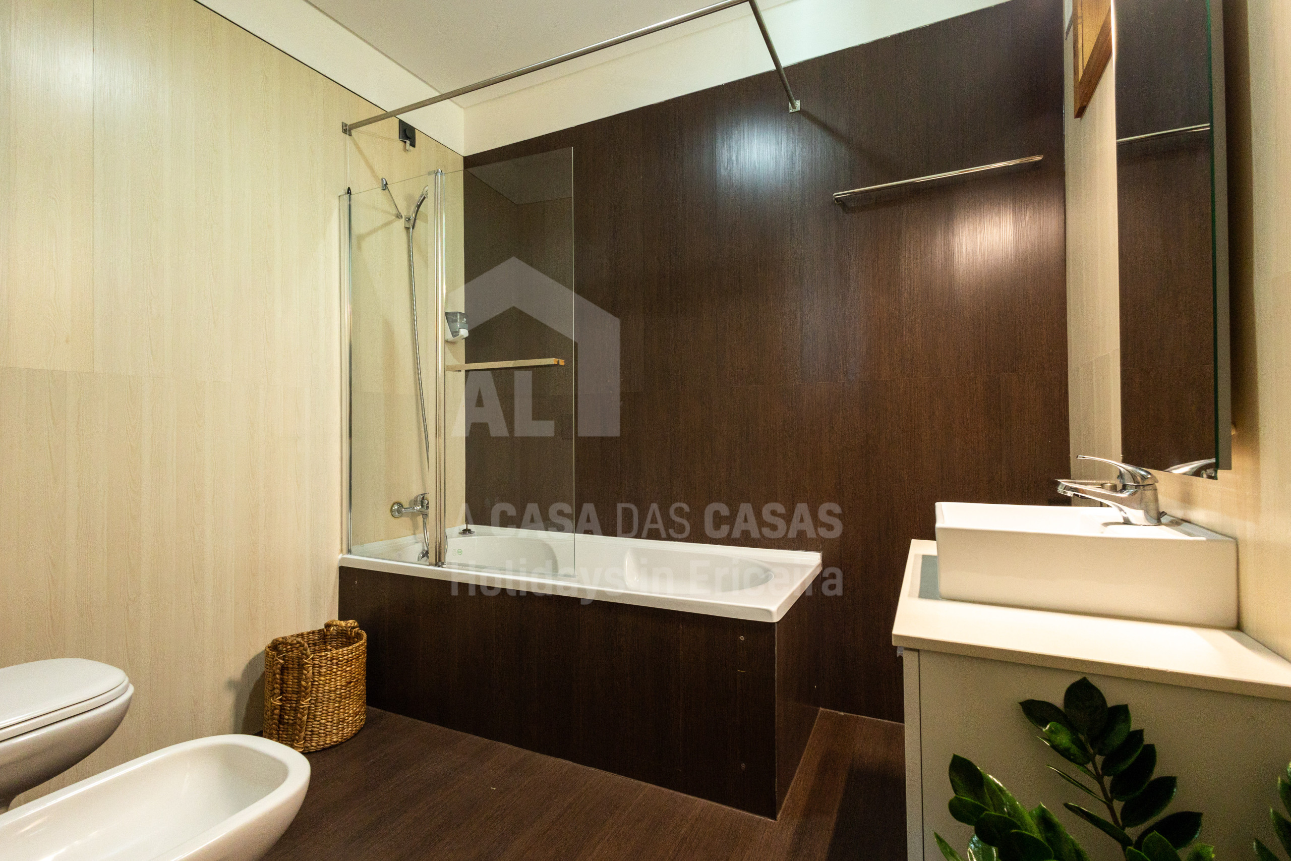 With 30 square metres well utilised, the space is intimate and functional, ideal for a romantic stay. It also has a TV for your entertainment. Comfort is guaranteed with air conditioning in the living room, high-speed WiFi and décor designed for couples.