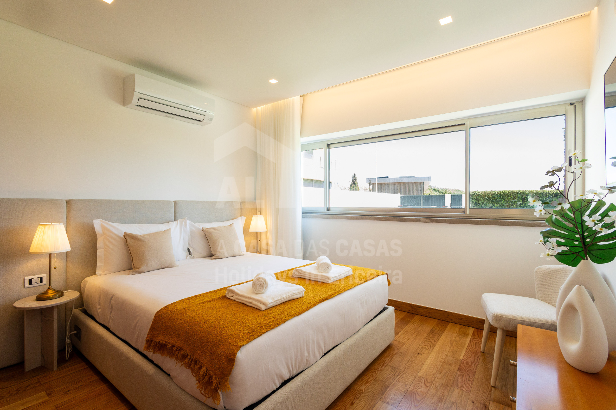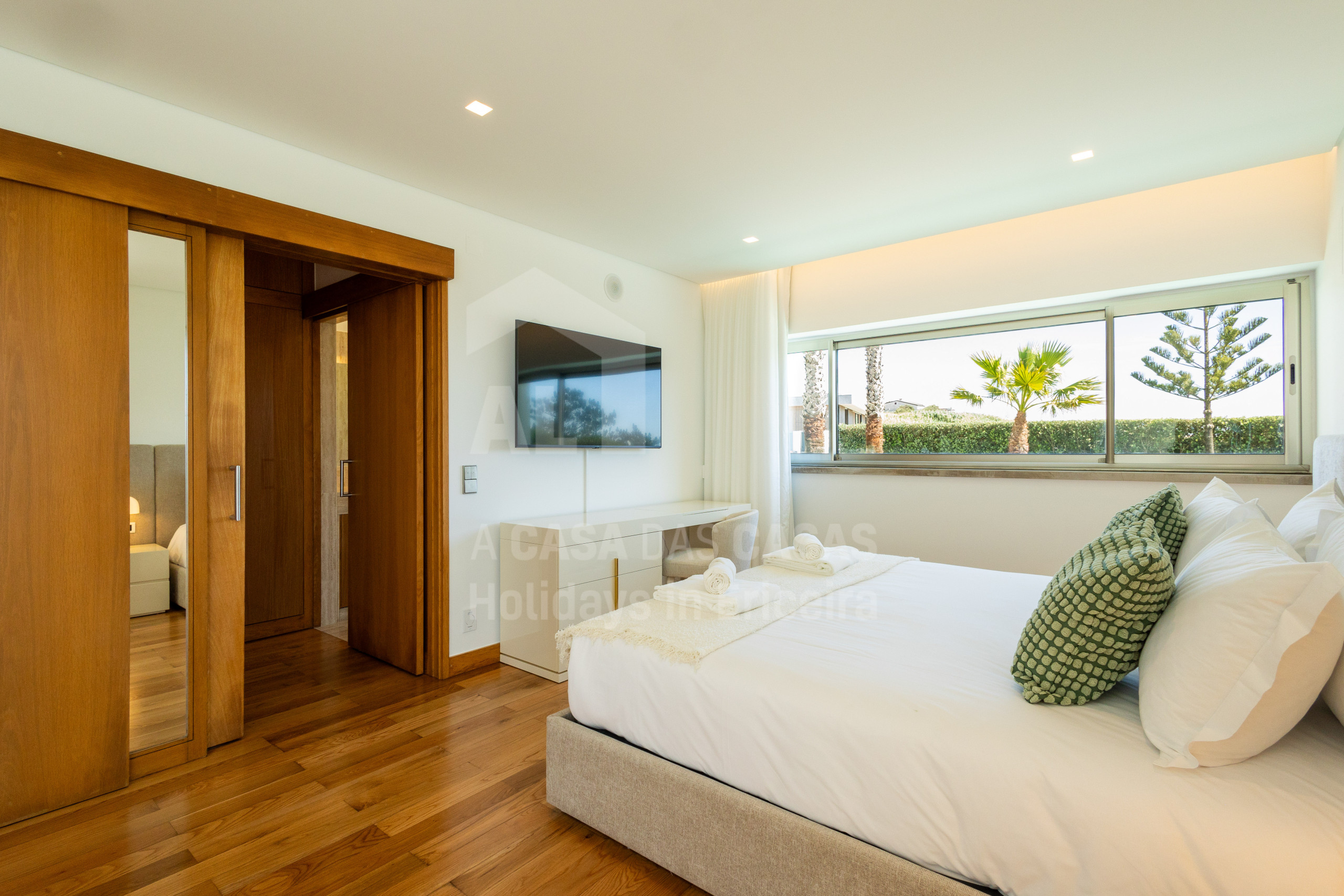 The house has four bedrooms: two suites with double bed, two rooms with double bed and a double sofa bed.